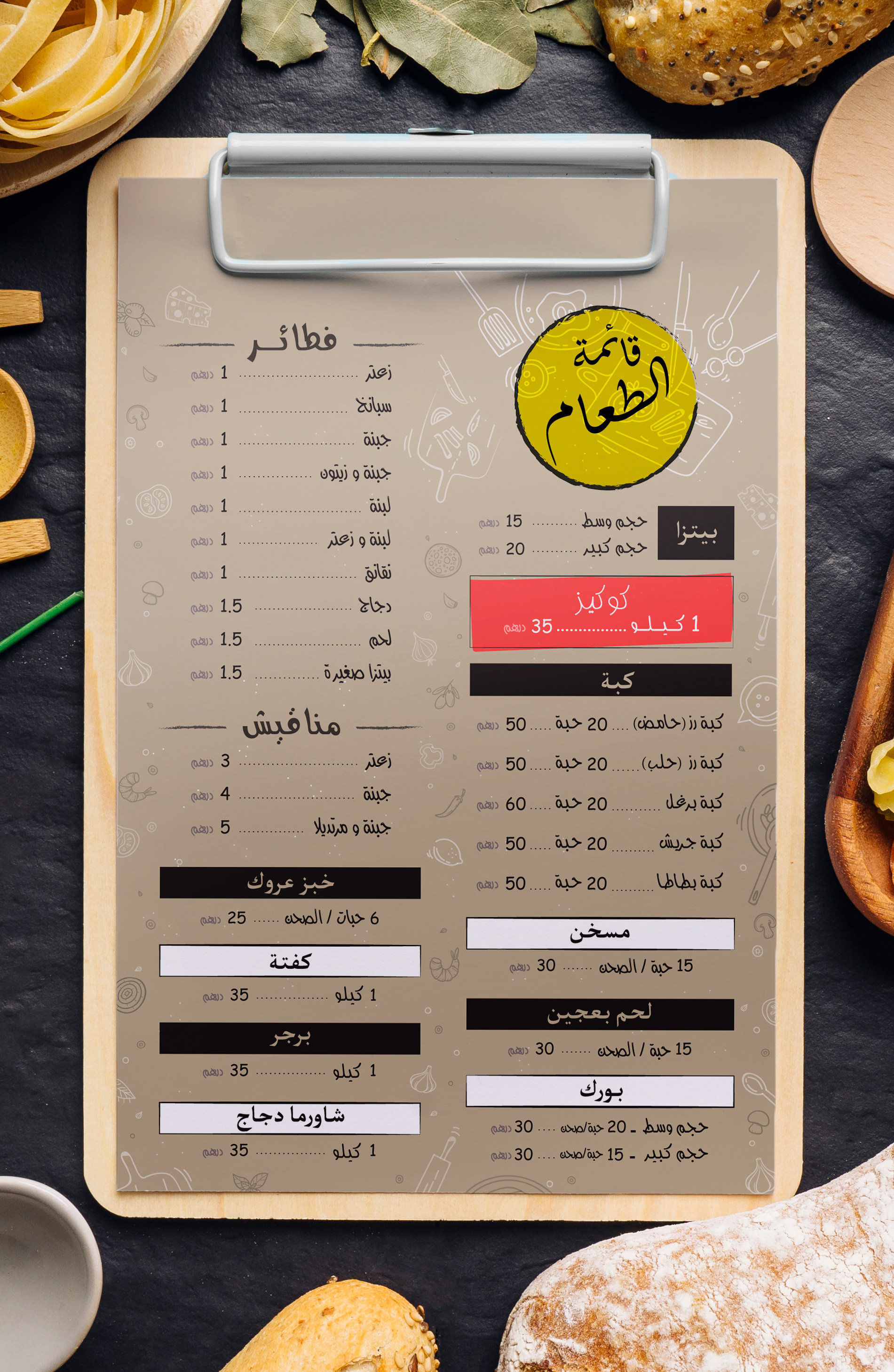 A food menu designed for homemade food business.